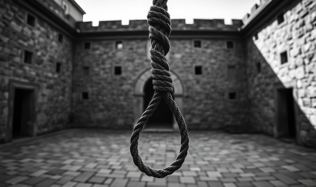 The sun rose that day as it did every day, a radiant witness to all it illuminated. As the shadows crept downwards along the stone walls that ringed the courtyard, the turning of the earth illuminated the wooden gallows that occupied the west end. The light crept upwards along the stairs—a creeping floodlight finally casting its rays through the thick hemp circle of the hangman’s knot, casting its own shadow where it hadn’t before.